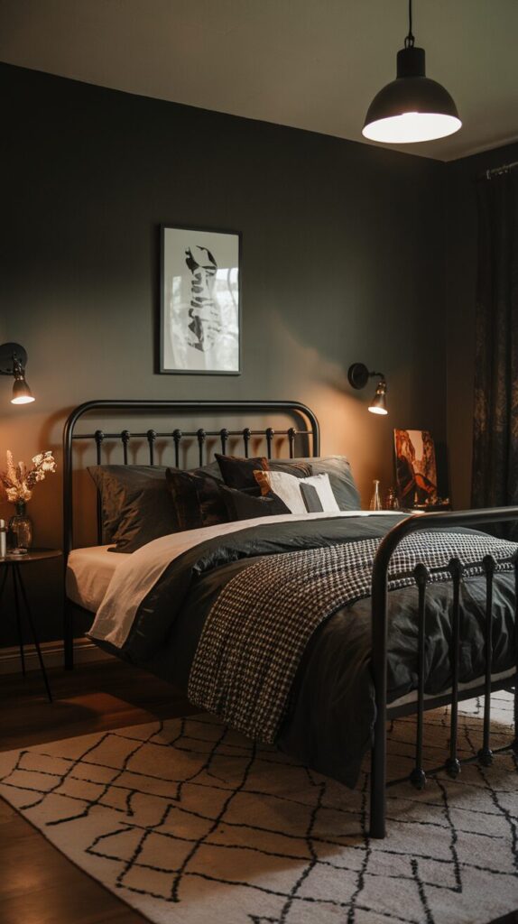 8. Matte Black Metal Bed With Moody Colors