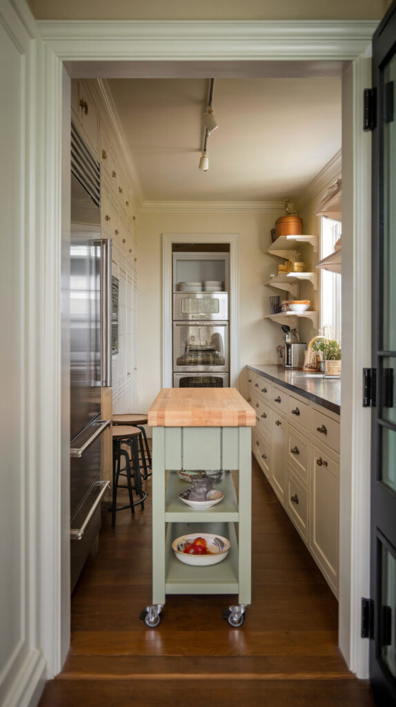 Permanent islands can feel risky in a tight layout. If you miscalculate by even a couple of inches, you’re stuck with it. A mobile island solves that fear instantly.
