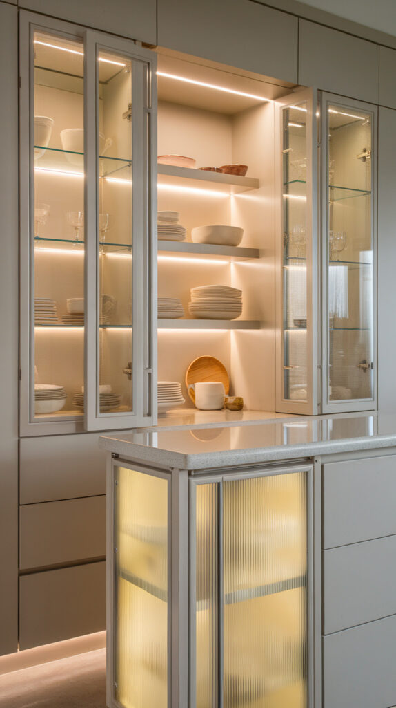 7. Glass-Front Island Cabinetry