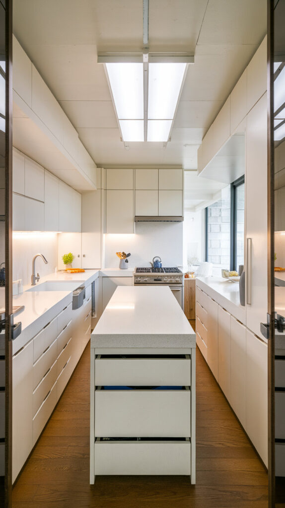 4. Galley Kitchen With Center Island Runway