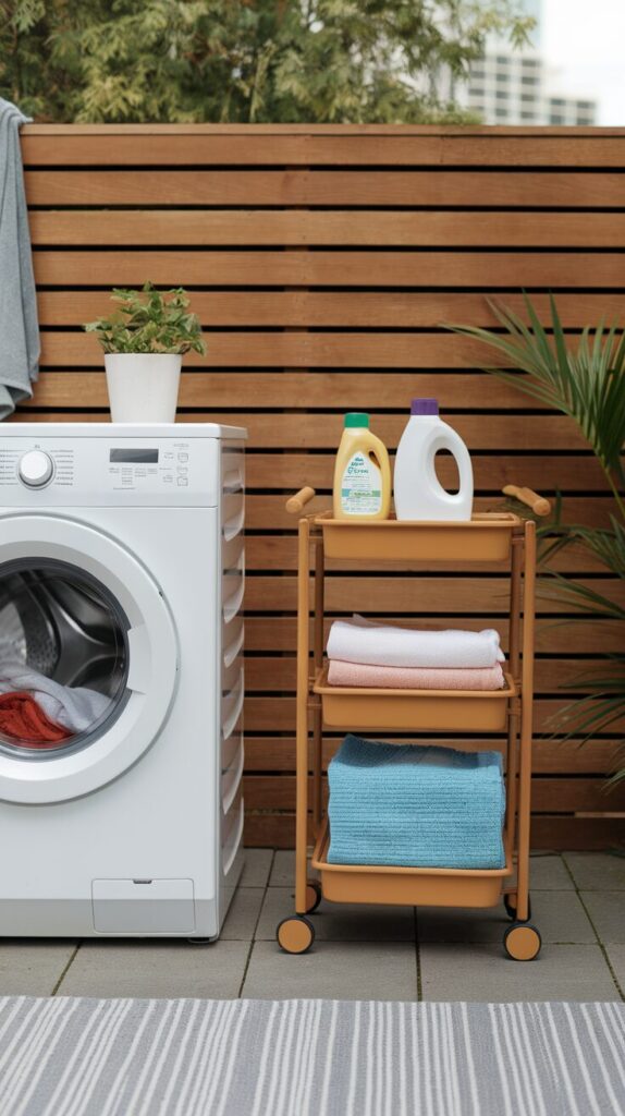 I underestimated how useful a rolling cart could be. A compact laundry cart moves supplies exactly where you need them. It keeps everything organized without permanent fixtures.