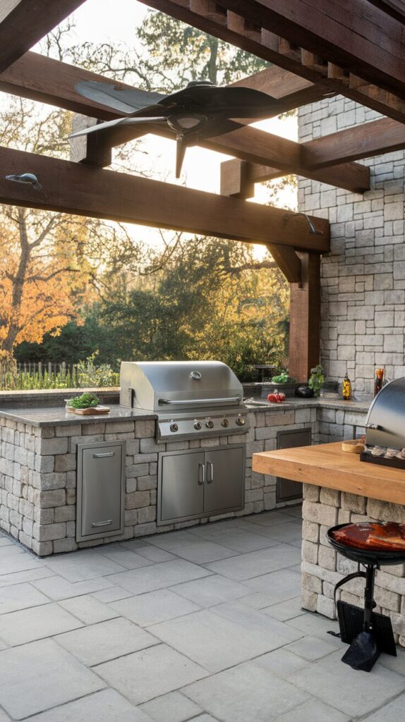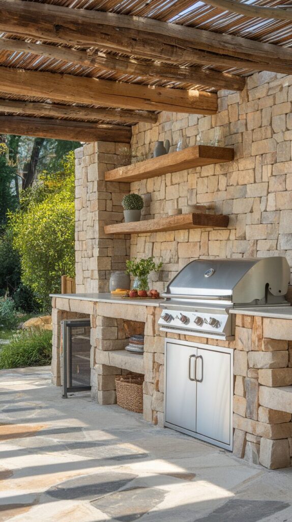 Rustic outdoor kitchens feel cozy and timeless. I built one using stone and wood, and it blends beautifully with the garden. Ever notice how natural textures calm the space instantly?