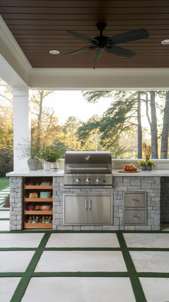People focus heavily on grills and forget storage. Lack of cabinets forces constant trips indoors. Adequate storage keeps tools, spices, and cleaning supplies within reach.