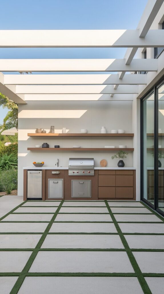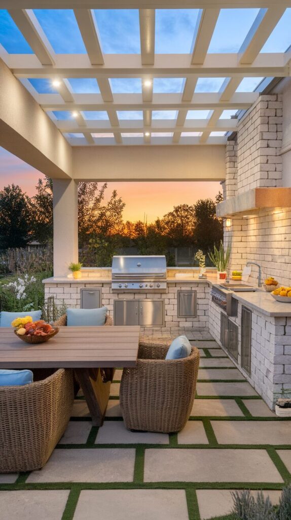 I like pergolas, solid roofs, or retractable canopies depending on climate. Each option offers different levels of protection and style. Coverage increases comfort and protects appliances from wear.