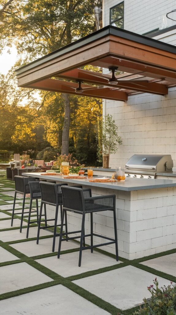 7. Outdoor Kitchen With Bar Seating for Social Cooking