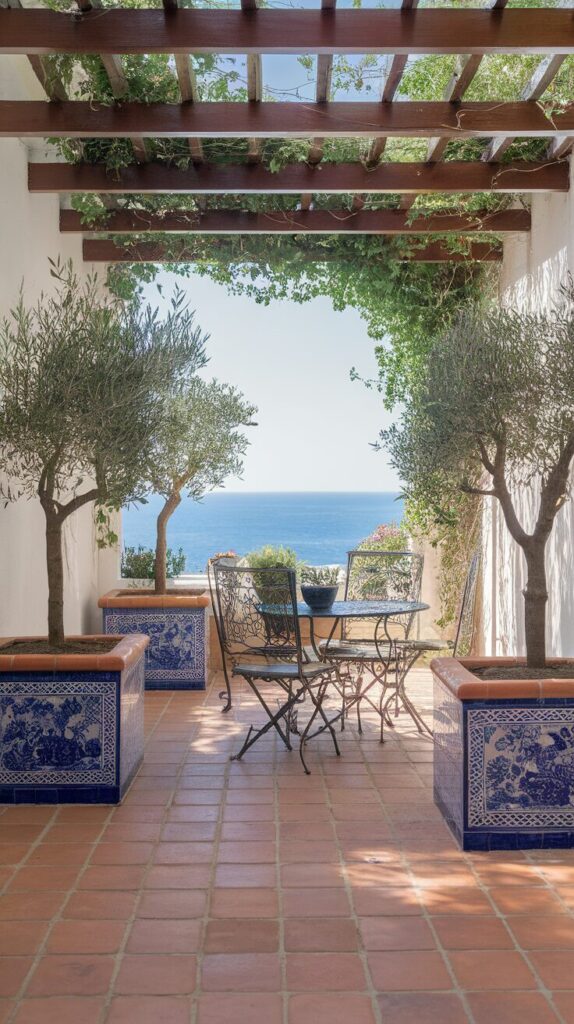 Use terracotta tiles, blue-and-white ceramics, wrought iron furniture, and textured stucco walls for that sun-kissed vibe.