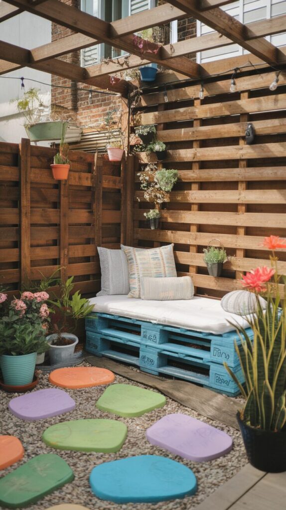 You don’t need a fat wallet to get a stunning patio. Grab some old pallets, turn them into seating or a coffee table, and add painted stepping stones or homemade planters.