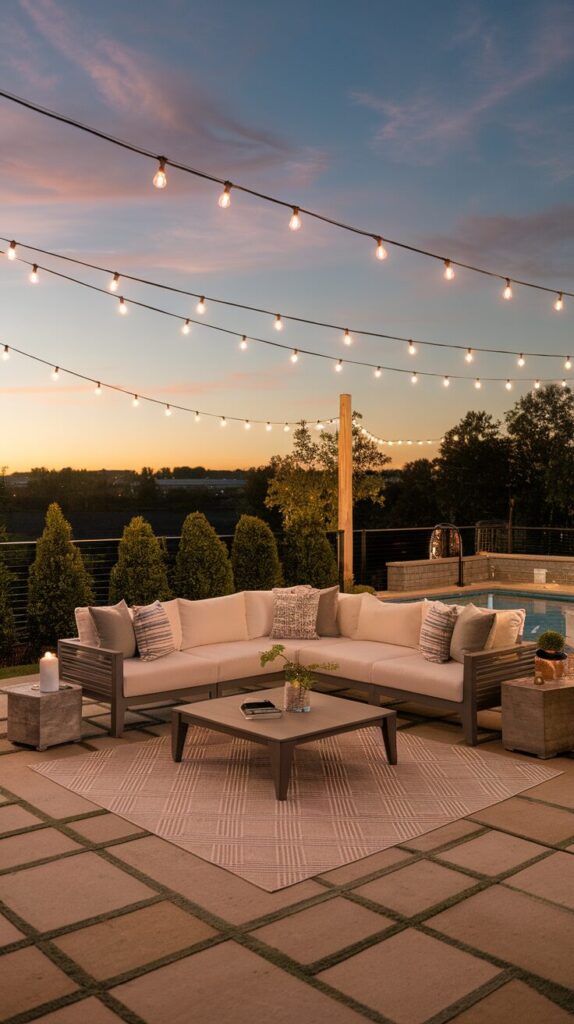 Even compact patios can use subtle zoning with rugs or lighting. Zoning adds structure and makes your outdoor living space feel curated instead of random.