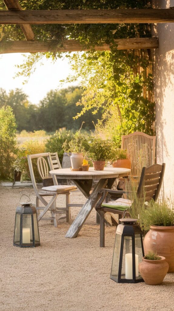 Mix in native plants or a small herb garden for that laid-back, homegrown touch. The goal is effortless charm — like you just stumbled upon a countryside hideaway.