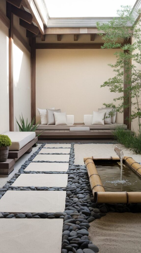 Need an escape from chaos? Turn your patio into a Zen retreat with bamboo fountains, small water features, and minimalist décor.
