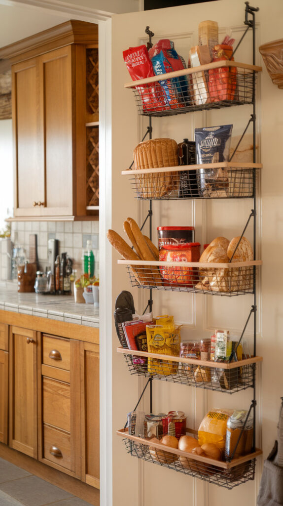 Metal racks and baskets are among the most durable pantry door options. They handle weight well and maintain their shape over time.