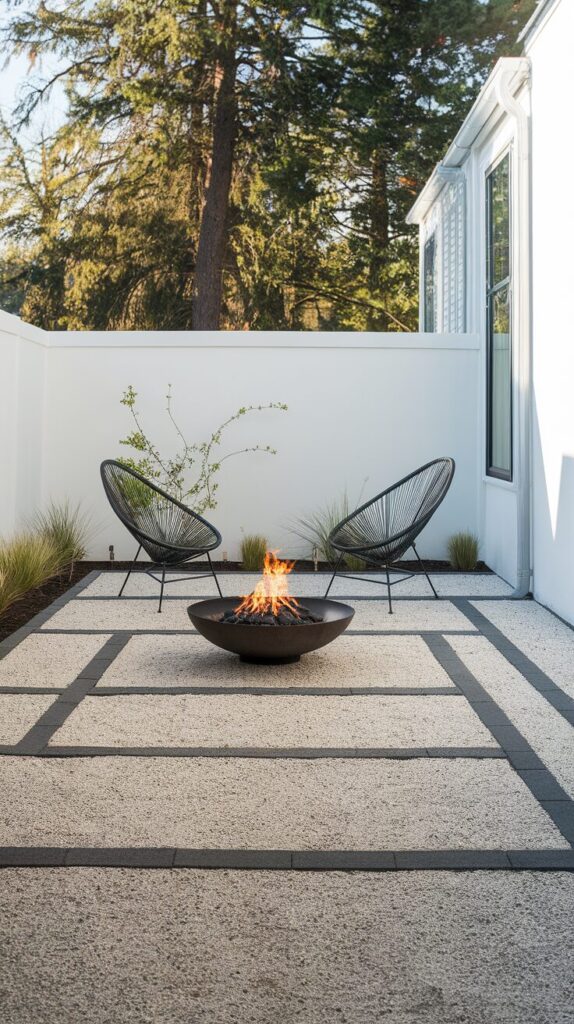I always place fire pits slightly away from the main seating zone. That way, smoke doesn’t dominate the entire patio.