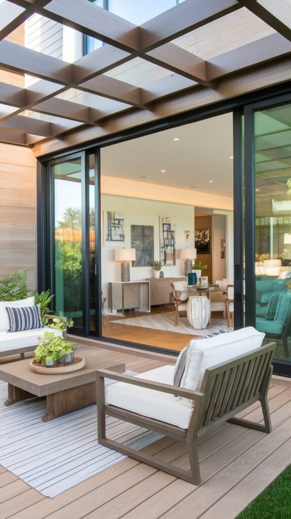 This one hits close to home because I love spaces that blur boundaries. An indoor-outdoor transitional patio extension makes your home feel larger instantly.