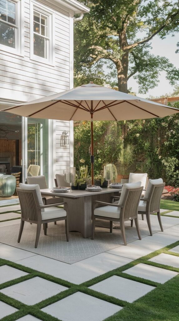 Give yourself clearance around the table so chairs don’t bump into walls or planters. Shade matters here more than anywhere else.