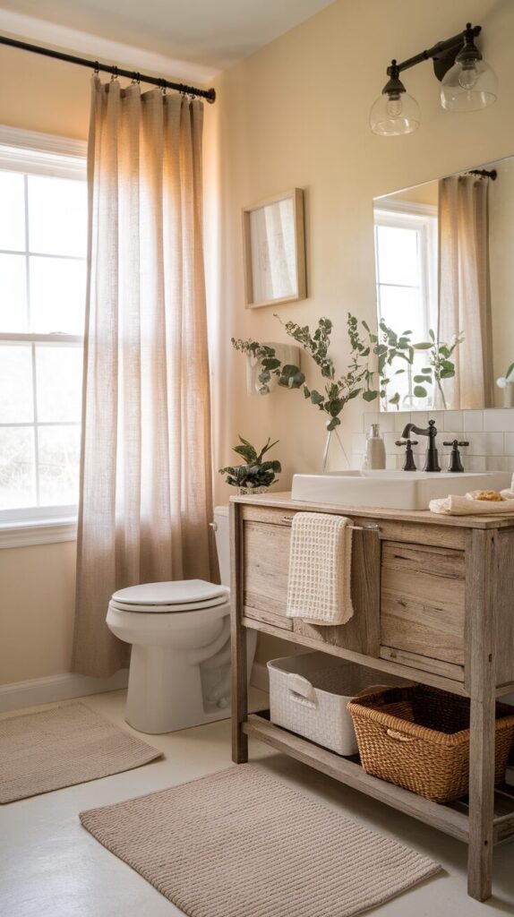 Finally, think about function first. A rustic bathroom should feel practical and comfortable, not just stylish. Plan your storage, layout, and daily-use items carefully so the space works beautifully for your lifestyle.