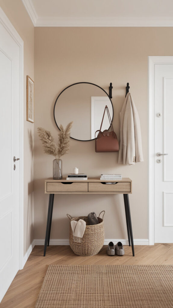 It also visually anchors the room, so the entrance doesn’t feel like a random gap in the wall. Even a tiny setup signals structure and order.