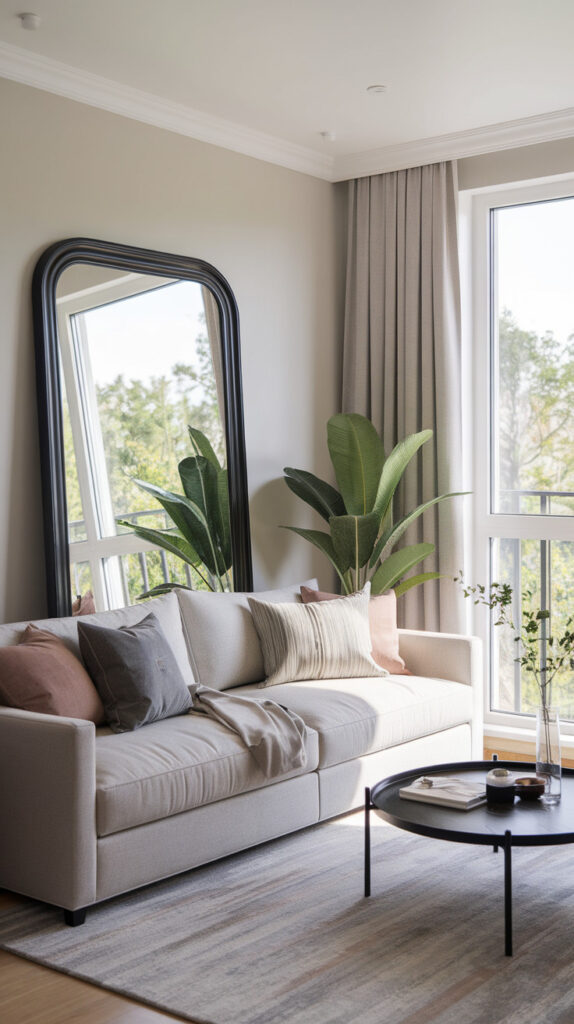I once hung a large mirror opposite a window in a dim rental, and it doubled the brightness instantly. It felt like I added another window without touching the wall.
