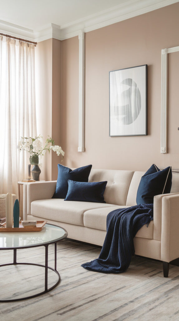 One consistent accent color creates cohesion. It connects pillows, art, and small decor pieces without looking random.