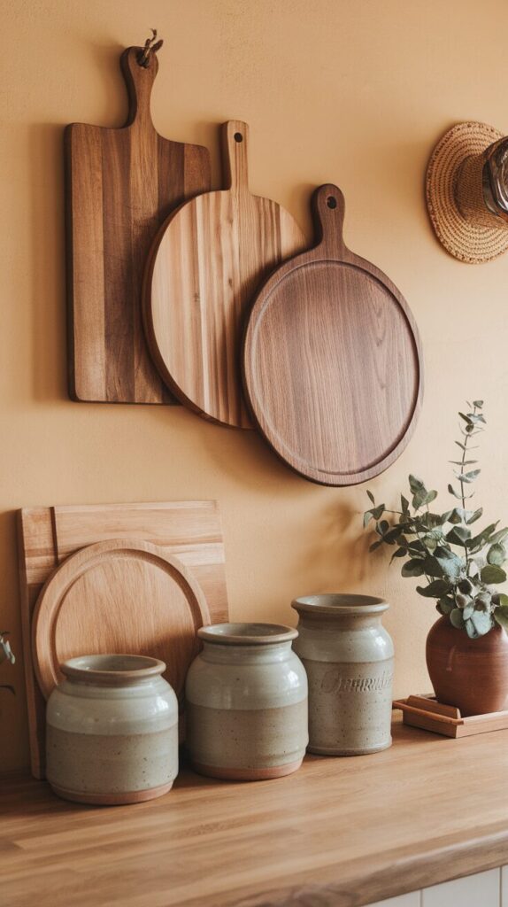 Hiding everything makes kitchens feel sterile. Once I started displaying my favorite cutting boards and cookware, the space felt warmer. Functional items doubled as decor without extra clutter.
