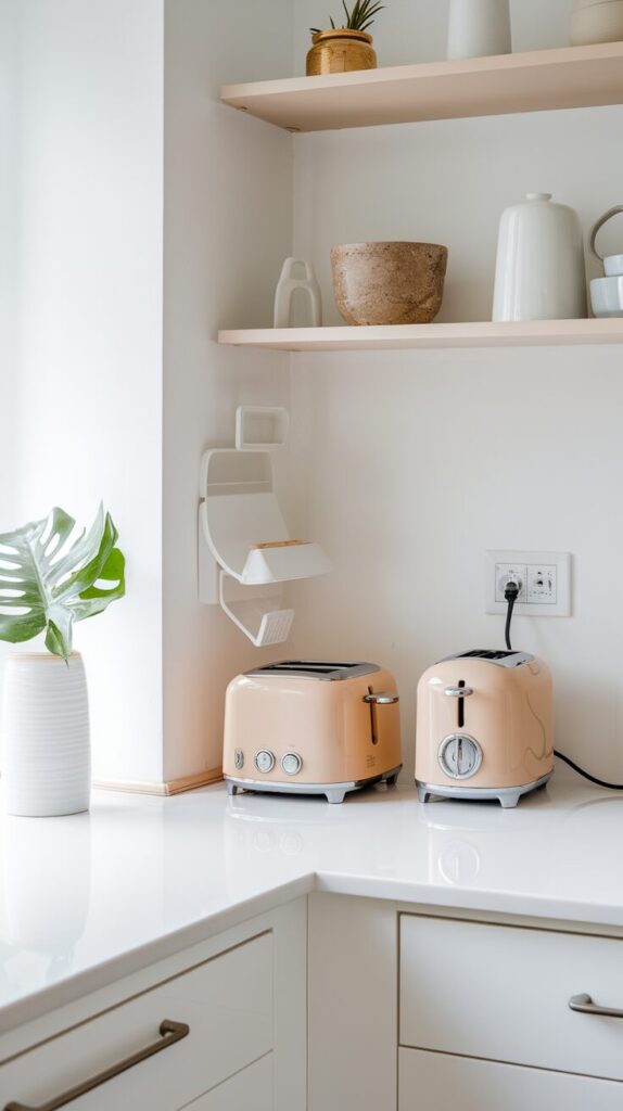White, black, or stainless blends easily. Retro styles add charm if the kitchen stays simple. Avoid cluttering counters with rarely used gadgets.