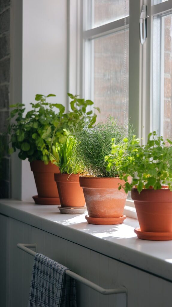 Terracotta feels classic and warm. Matching planters keep things cohesive. Avoid overcrowding windowsills with too many pots.