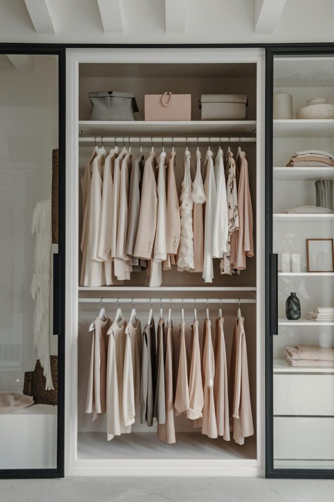 Pair this approach with high-quality hangers, simple shelving, and perhaps a few baskets, and your closet will feel calm, organized, and effortless to maintain.
