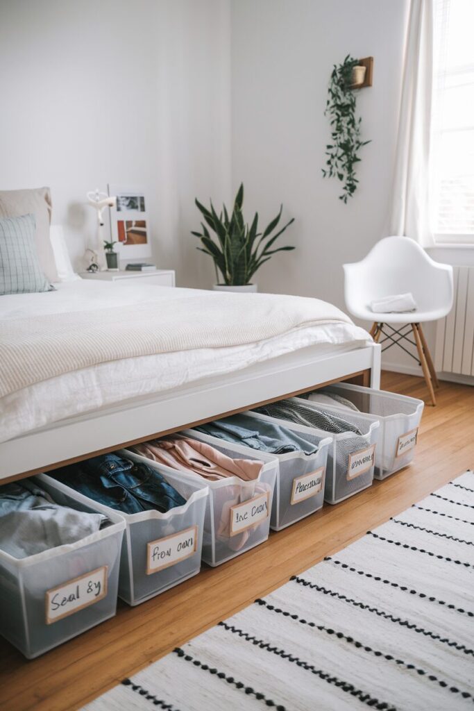 Bins, vacuum-sealed bags, or under-bed storage are great for keeping these items out of sight but still accessible when needed.