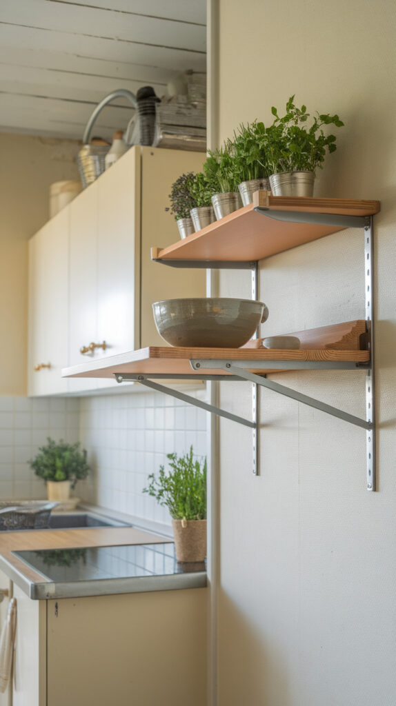 Permanent counters aren’t always the answer, especially in a tiny apartment kitchen. A fold-down wall shelf gives you extra surface only when you need it. I once installed one near the stove just for plating food, and it kept my main counter clear.