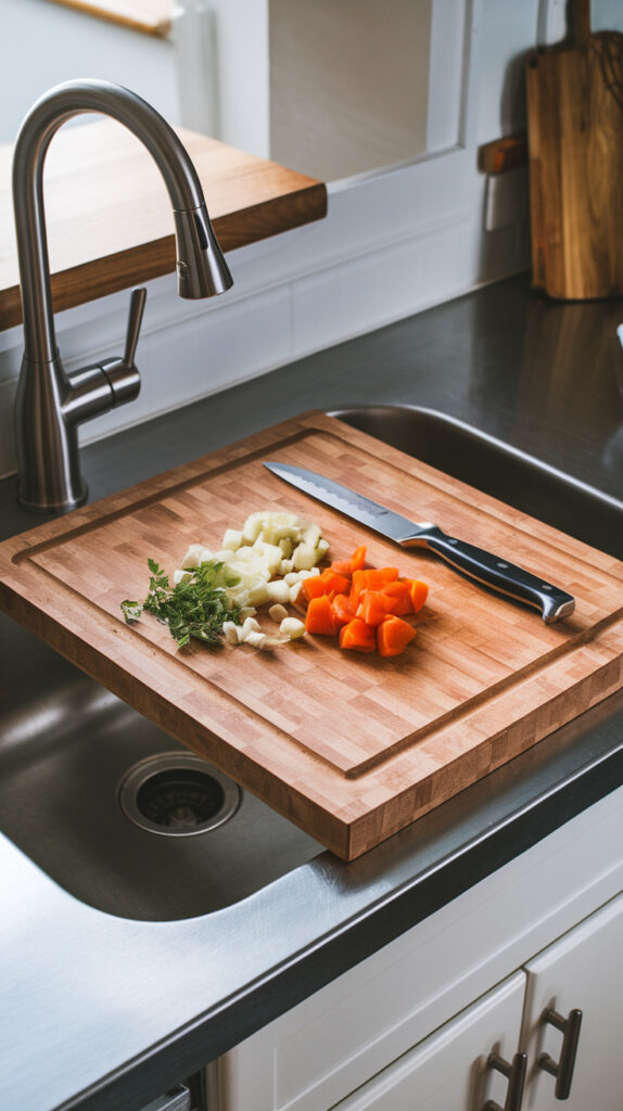 Stove covers and sink covers aren’t just for aesthetics. A custom-fit cutting board that sits over your sink instantly creates more prep space. I tried this in a small condo kitchen, and it felt like I magically gained a foot of counter.