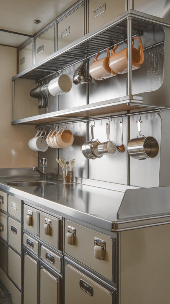 Small kitchens demand vertical thinking. Walls, cabinet sides, and undersides offer storage opportunities that don’t compete with prep areas.
