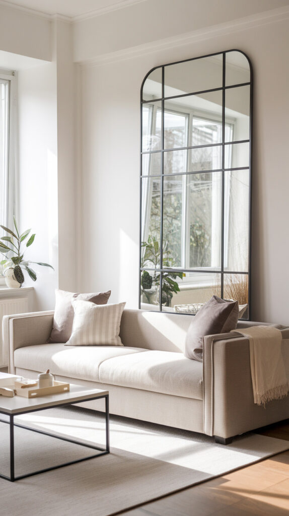I hung an oversized mirror opposite my window, and the entire room brightened and expanded visually. It felt like adding another window without any renovation drama.