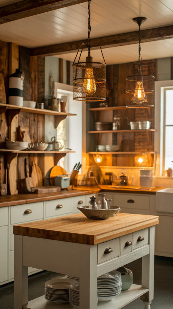Lighting shapes how a kitchen feels just as much as the cabinets or countertops do. Rustic pendant lights instantly add warmth and personality while focusing light exactly where you need it.