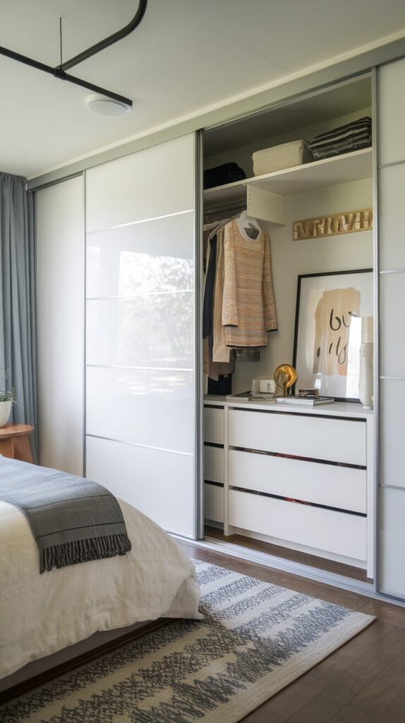 Choose cabinet finishes that blend with walls. Avoid bulky handles that scream furniture. Seamless design wins.