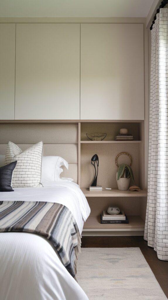 Then focus on vertical thinking. Small bedrooms reward upward storage, multi-functional pieces, and hidden compartments. Horizontal sprawl kills flow instantly.