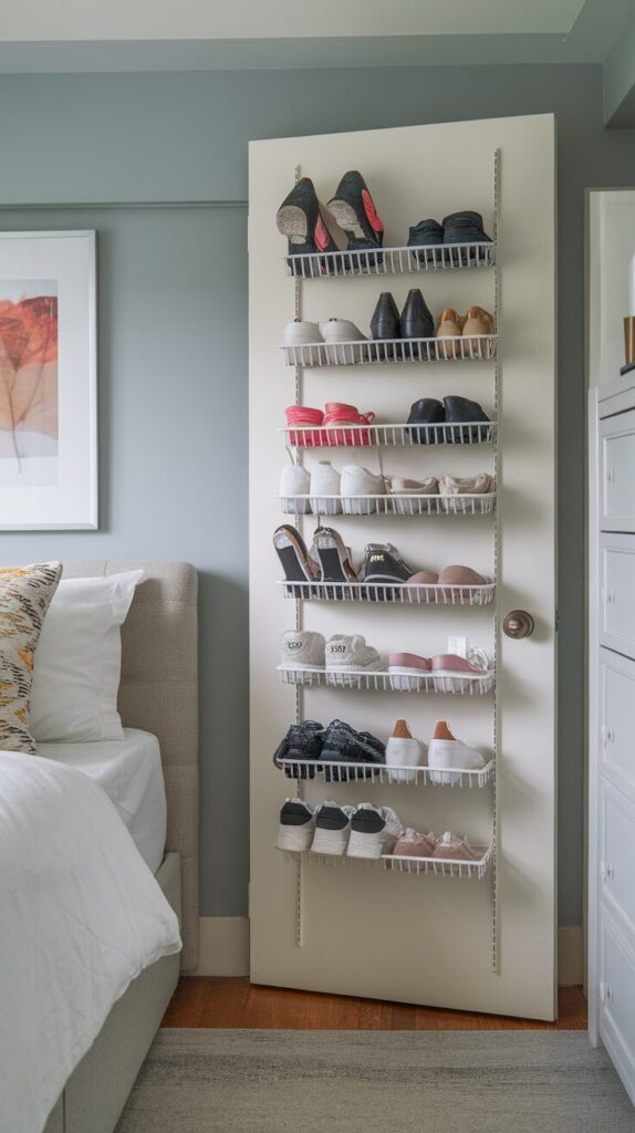 Doors hide storage potential. Over-door racks unlock it. I store shoes and accessories there. This option suits rentals. No drilling required.