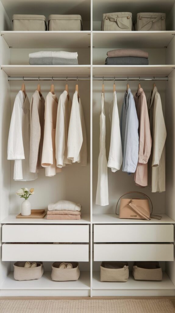 Tall storage makes even small closets feel custom. You control the chaos instead of letting it spill out.