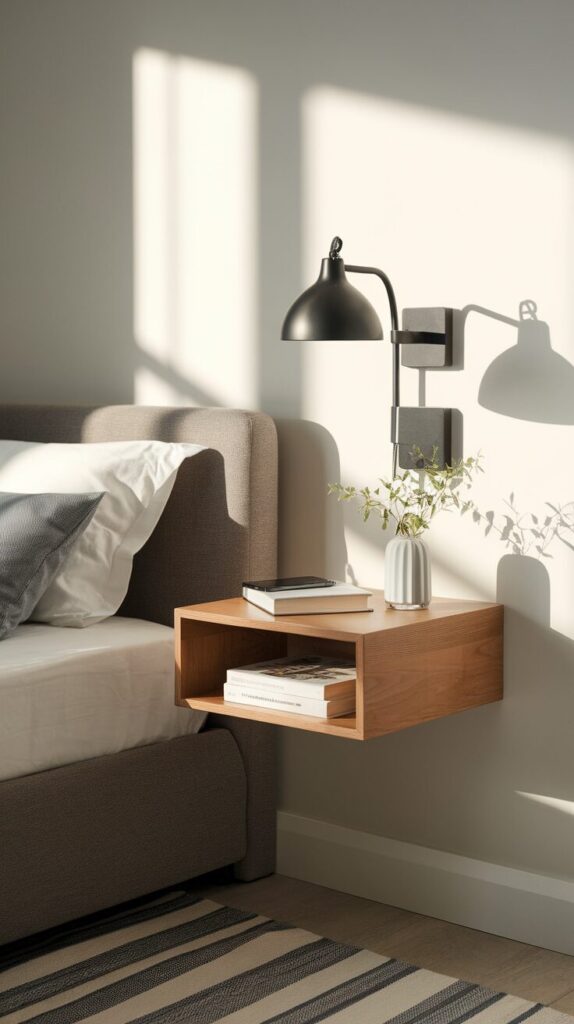 Traditional nightstands waste floor space, and I’ll die on that hill. They block airflow, collect junk, and make vacuuming annoying. Wall-mounted nightstands feel lighter and smarter.