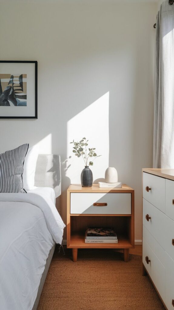 Choose fewer, better pieces. Intentional minimalism wins in small bedrooms.