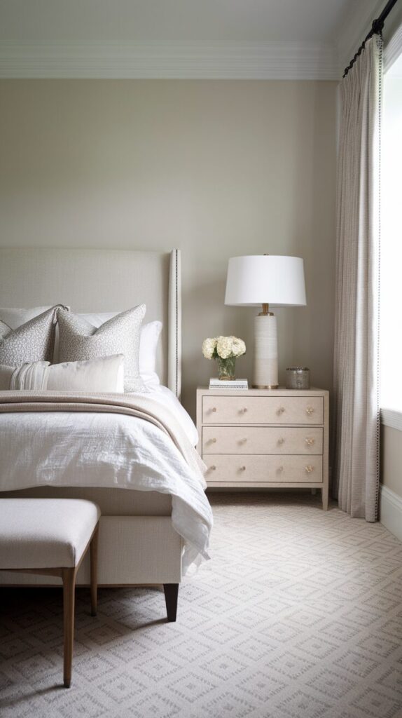 I know wall-to-wall carpet scares people, but hear me out for a second. A soft neutral carpet instantly warms a bedroom and makes it feel finished without trying too hard.
