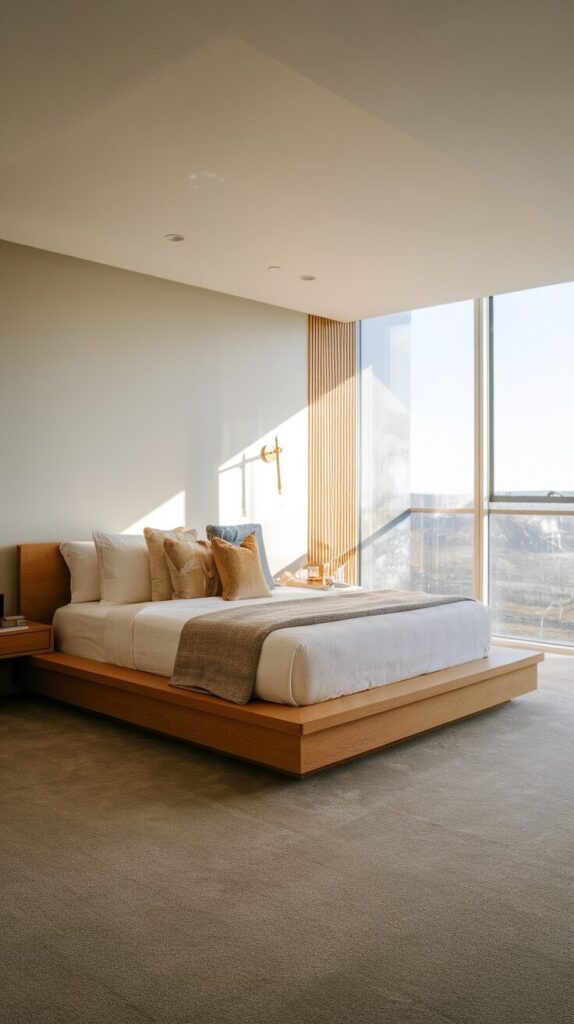 Low-pile carpet looks sleek and feels practical. It maintains clean lines while softening the room. Bedrooms stay calm and uncluttered.