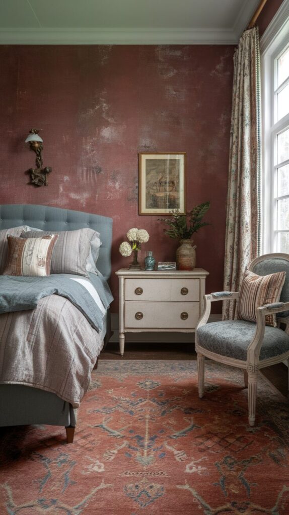Vintage carpets bring instant character. I love how they add soul without effort. Bedrooms feel layered and lived-in.