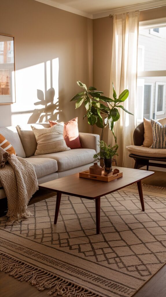 Picture a mocha-toned rug under a cream sofa—it unites all the elements while adding texture underfoot. It’s not just décor; it’s cozy functionality at its finest.