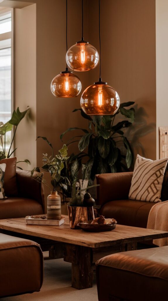 Lighting can make or break a room, and when it comes to brown décor, amber-toned lights are a total game-changer. They amplify the coziness of brown shades, making everything feel more inviting—especially at night.