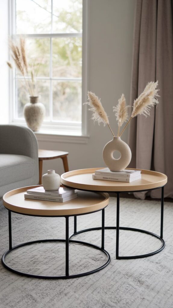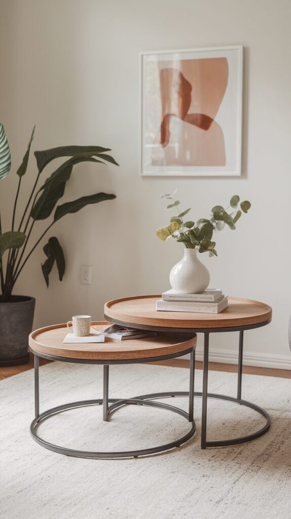 This setup works especially well in smaller or awkward rooms where one solid table feels bossy. You get multiple levels, easier reach, and way more styling options without committing to a single massive shape.