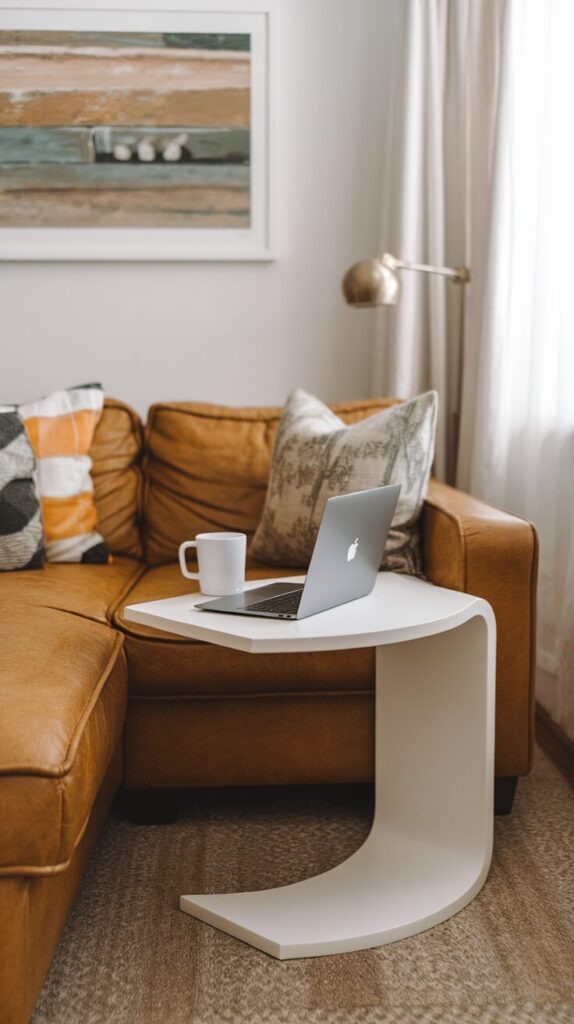 The shape hugs seating naturally. You gain surface space without bulk. It adapts fast.