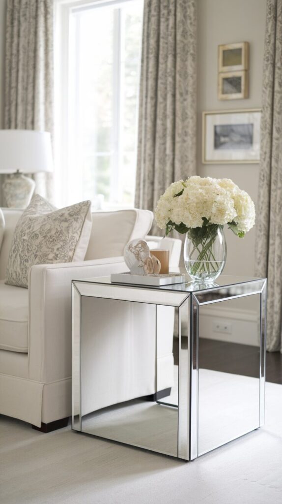 Mirrored tables bounce light beautifully. I love them in darker rooms. They brighten spaces quietly.