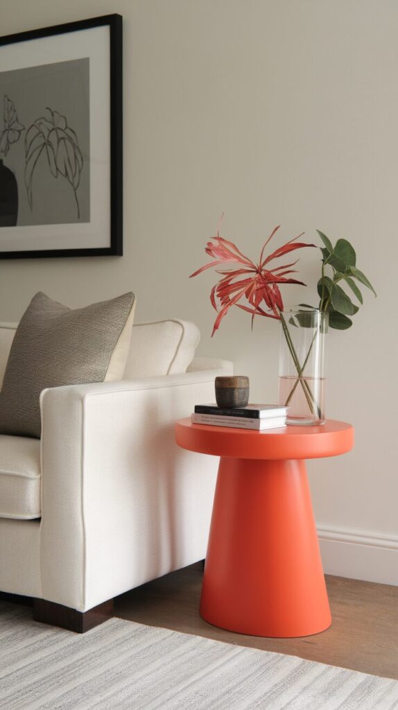 Side tables deserve attention too. A bold side table adds personality. I love using color or shape here.