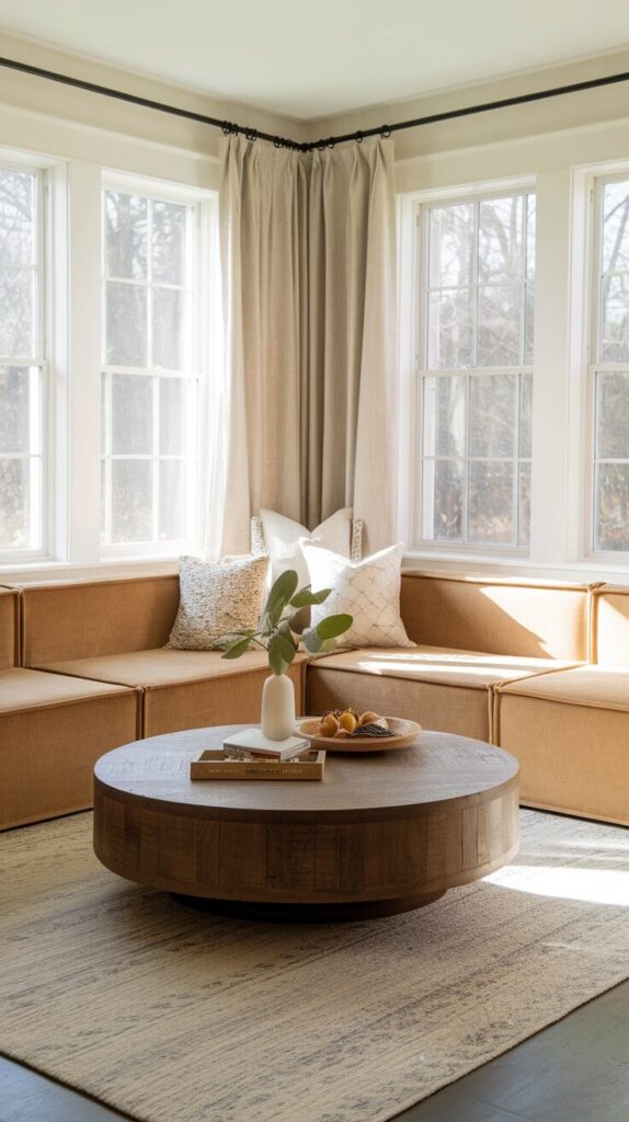 Rooms full of straight lines can feel stiff and unfriendly. A round coffee table instantly softens the layout and improves flow. I recommend this constantly for families or tight spaces.