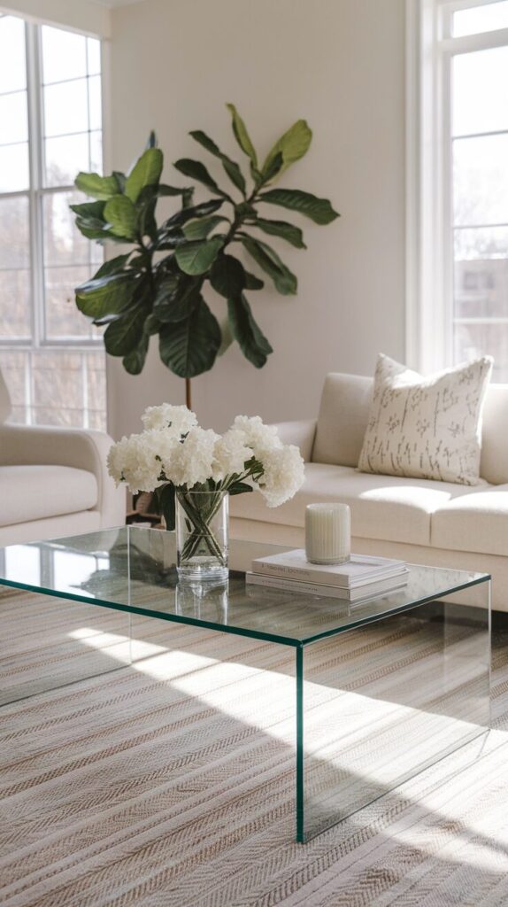 Heavy furniture can overwhelm smaller spaces. A glass coffee table visually disappears while still doing its job. I resisted these forever, then realized they solve space issues instantly.
