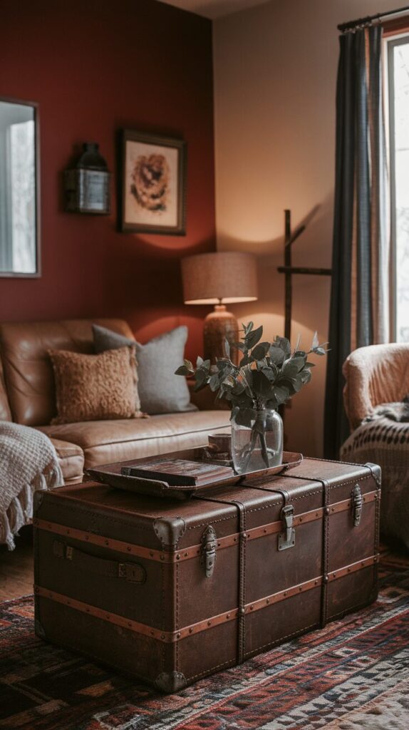 A trunk works best in eclectic or cozy rooms where perfection feels boring. It hides blankets, games, and clutter while telling a story.